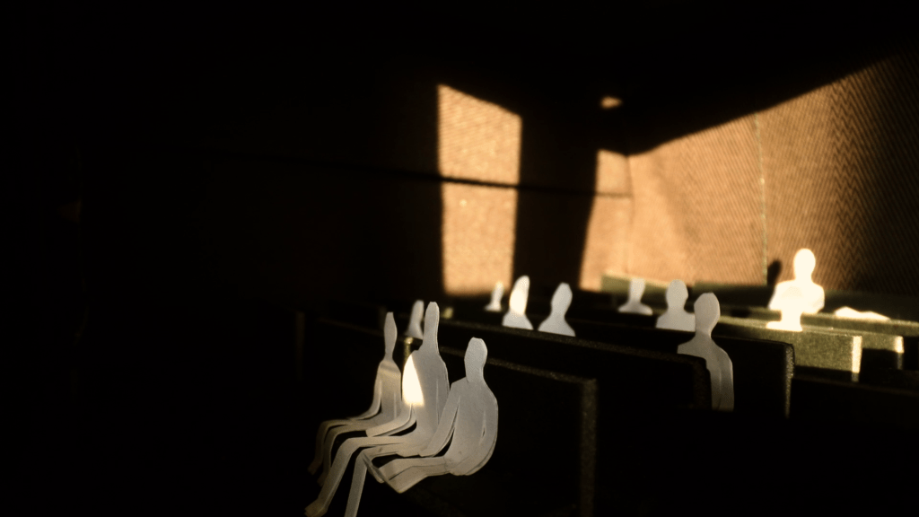 Au cours de chaque plan fixe du film, les variations de couleurs sont difficilement perceptibles. Ce sont bien les changements de plan, et donc les changements de cadre, qui nous rendent sensibles l’avancement du film projeté et donc la course du soleil. Cette dernière se manifeste de biais, comme par ricochets successifs, sautant d’un cadre à l’autre, d’une surface à l’autre.