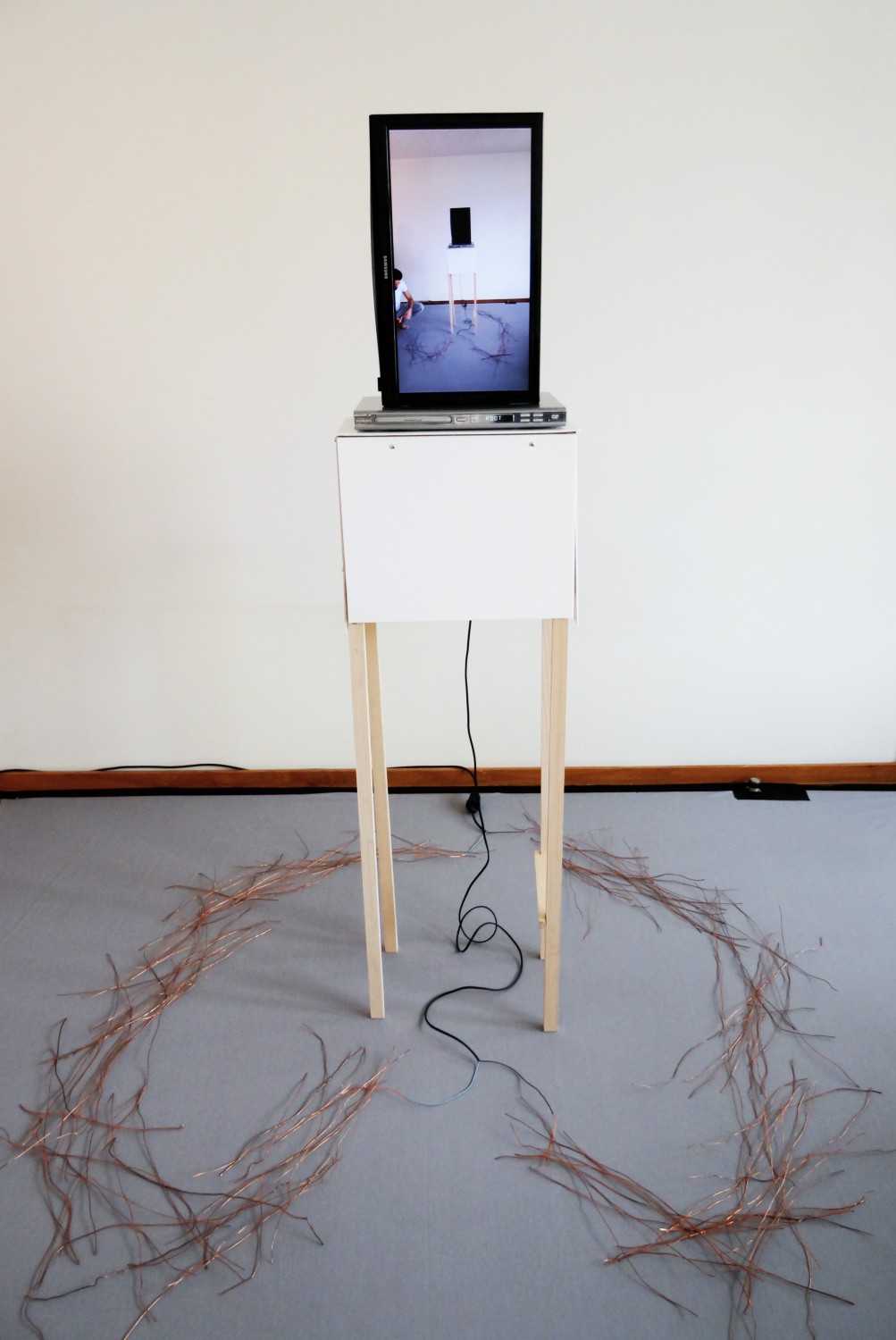 bois, montage électrique, cuivre, écran TV, lecteur DVD