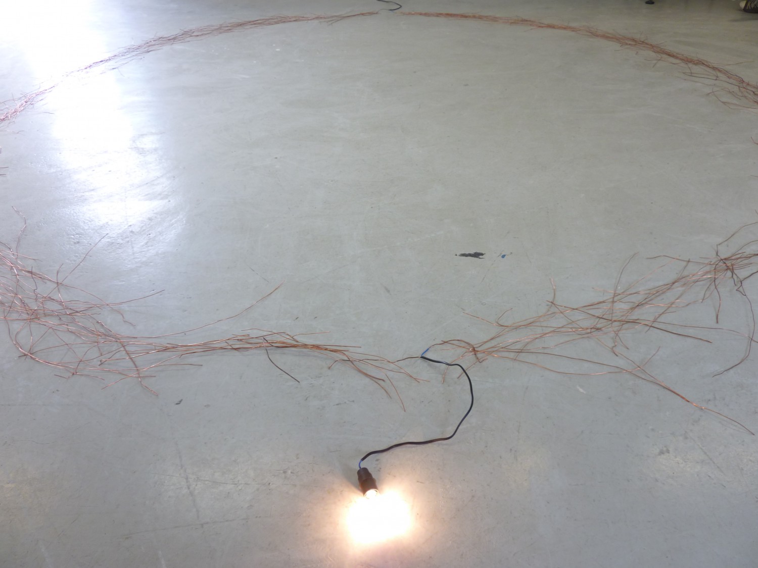 Le fil électrique, comme l’interrupteur, est le symbole et l’outil de notre maîtrise technique de l’énergie électrique. Il s’agit de remettre en doute ce contrôle, cette mise à disposition, en manipulant ces objets dans un espace-temps différent.