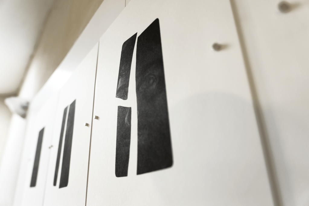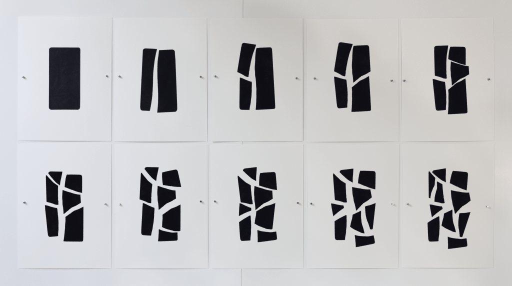De par le procédé de réalisation, selon la position qu’on adopte dans l’espace, ces pièces apparaîtront tour à tour comme image ou comme forme géométrique abstraite.